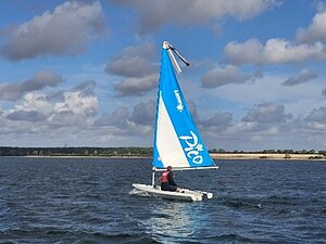 The single-handed course is delivered in small, single-handed dinghies with one participant per boat. The instructor will teach from a powerboat. These sailing boats require a good level of fitness and agility. The photo shows a Pico sailing boat which we use.