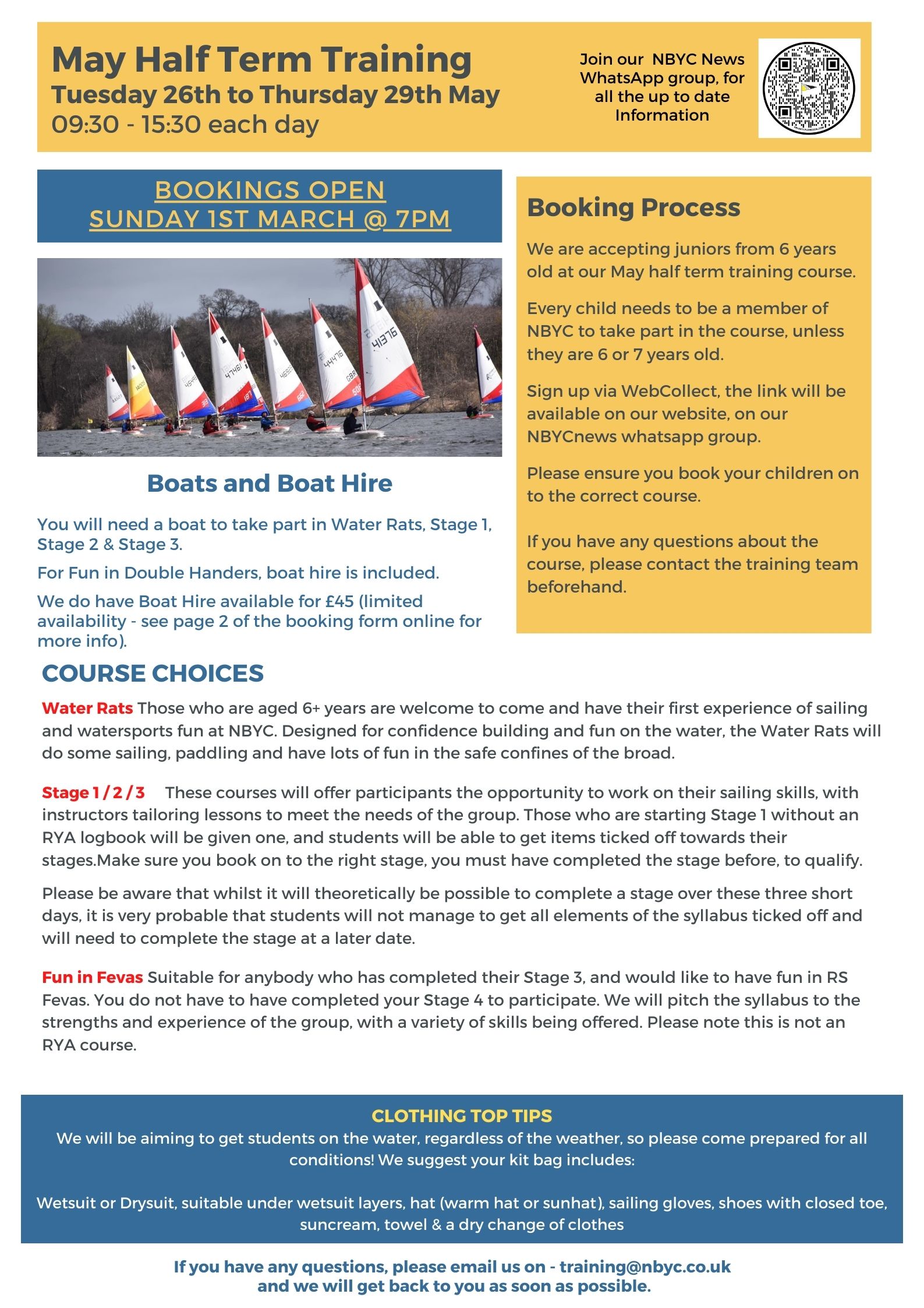 If you have any queries regarding the course, please email chiefinstructor@nbyc.co.uk
