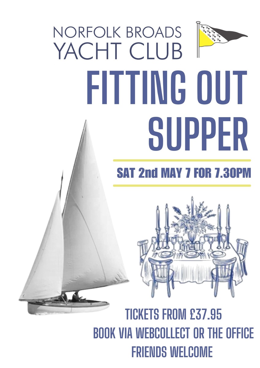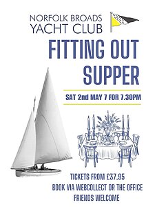 Join us for the Fitting Out Supper on Saturday 2nd May at 7pm (for 7.30pm)