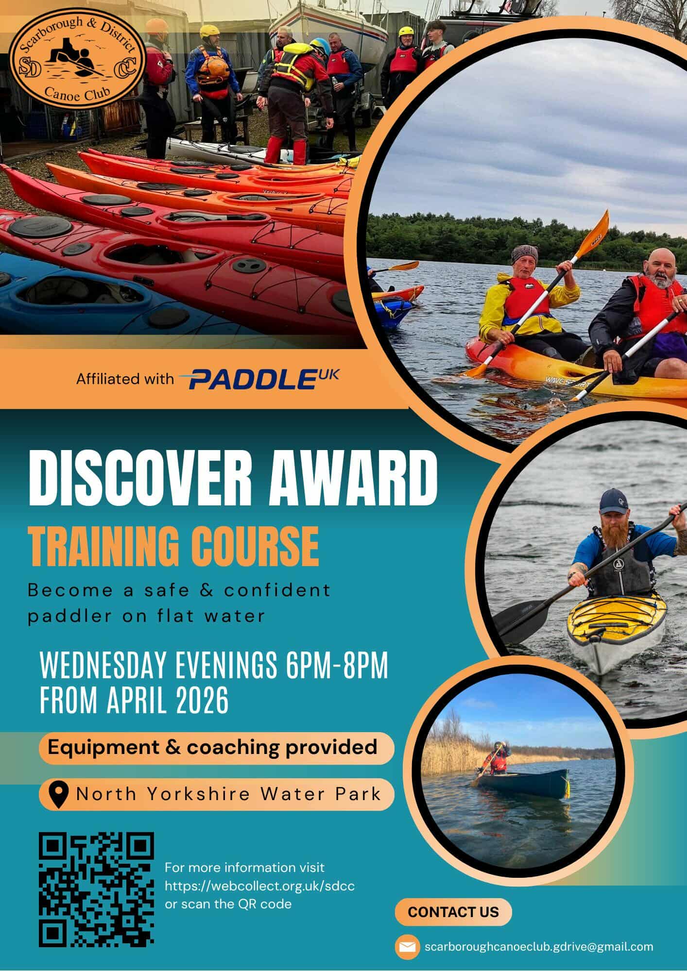 We invite anyone interested in completing a beginners course in paddle sport to attend our Paddle Discover Beginners Course, which gives you the opportunity to try out paddling with Scarborough Canoe Club at the North Yorkshire Water Park (Wykeham Lakes).